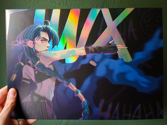 The artwork features Jinx from the series Arcane, digitally drawn by me. NOT AI-GENERATED!